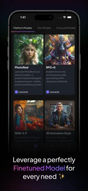 - 先进的AI模型:应用利用通用或经过精细调整的AI模型,能够轻松生成生产级别的艺术和设计资产,这些模型能够产生多样化的高质量AI艺术和设计作品。