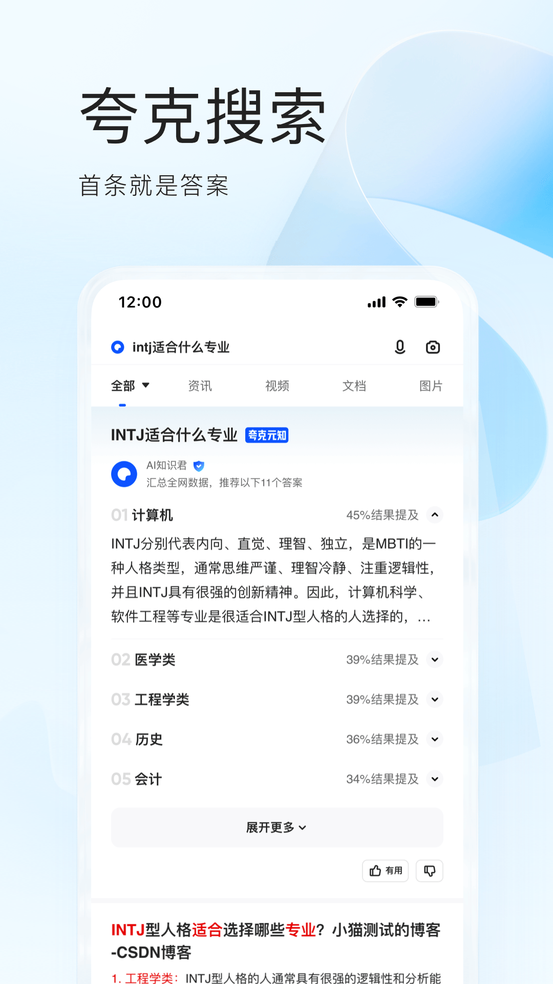 夸克APP是阿里巴巴集团旗下的智能搜索应用,结合人工智能和大数据技术,提供丰富的搜索服务和实用工具。它能够发掘海量网盘资源,支持视频多倍速播放,并具备画中画小窗模式,便于用户边听课程边做笔记。夸克APP还推出了AI PPT功能,帮助用户快速生成演示文稿。此外,它提供个性化导航、手机资源管理和AI工具箱等特色功能,旨在提升用户的搜索效率和信息获取体验,是一款集搜索、娱乐、学习于一体的综合性移动应用。