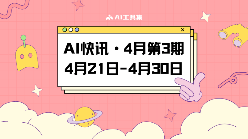 AI工具集采用每月3期的版面集合,每日更新AI行业的最新快讯,本期为4月第3期(4月21日到4月30日)的AI行业新闻集合。