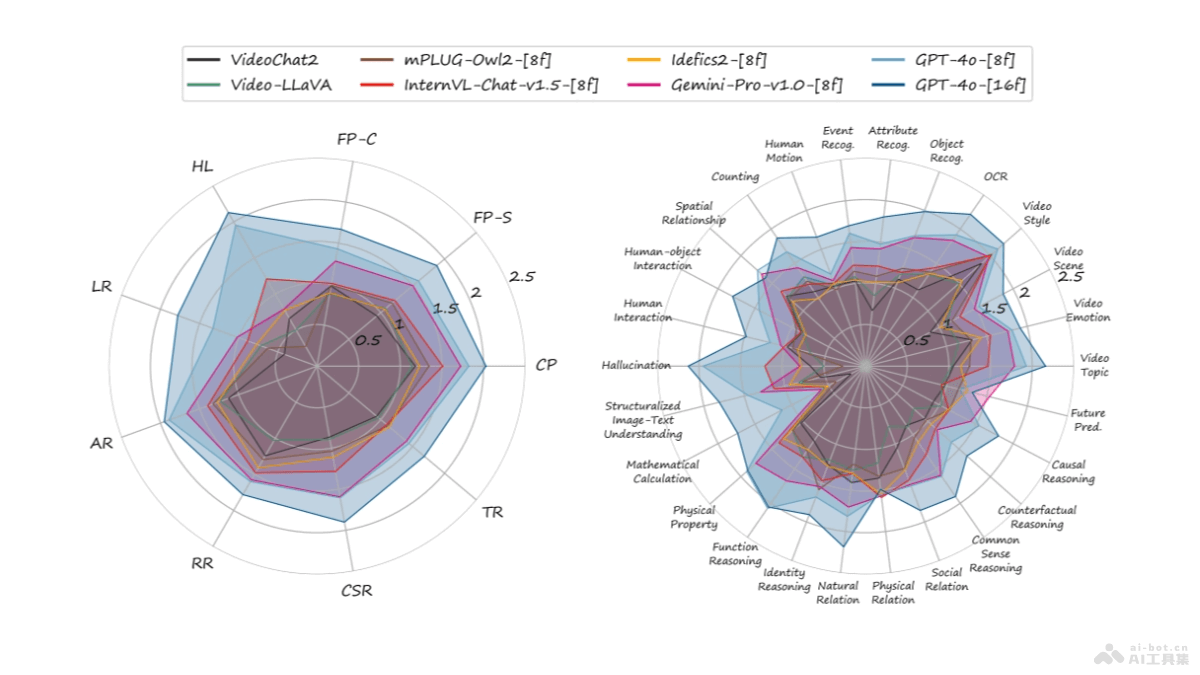 - 细粒度能力评估:用26个细粒度的能力维度,对模型的视频理解能力进行详尽评估。