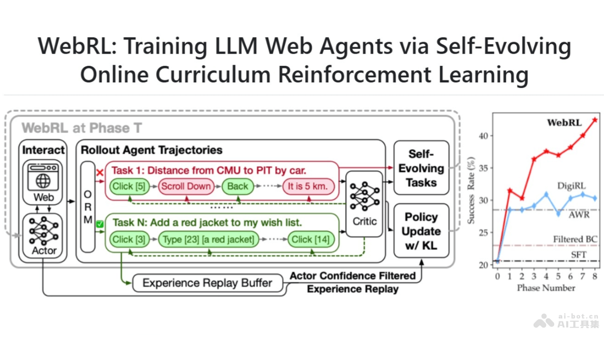 - 持续性能提升:WebRL基于迭代自我进化,让智能体在在线环境中持续、一致地提高性能。