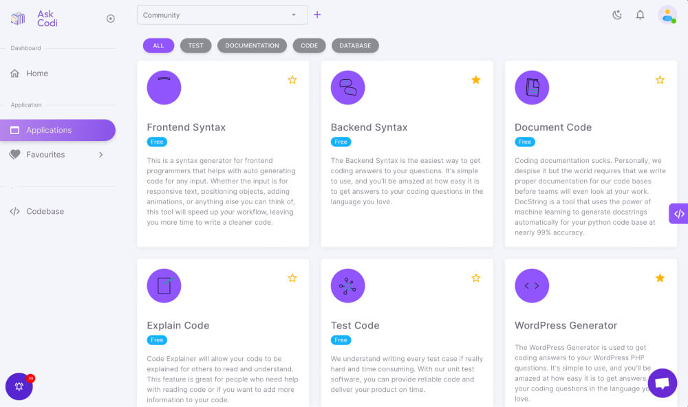 AskCodi是基于开发者的需求而制作的,以避免多余的任务,从而减少花在开发上的时间和更多的时间来执行程序。AskCodi通过工具帮助加快开发过程,在这些工具中,你可以要求Codi AI回答编码问题、解释代码、记录或测试代码。以及像统计分析、数据科学和许多其他的特定应用,对在网上努力寻找答案的开发者来说是大有帮助的。