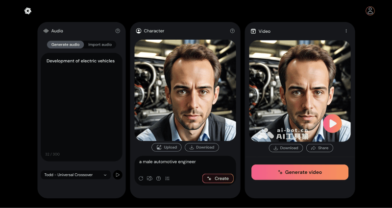 - 生成后的视频可点击下载或进行分享
