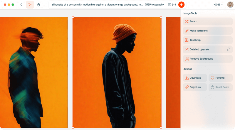 - 丰富的图片调整功能:内置颜色选择、画面重绘、图片变体、图片高清放大、背景移除等小工具