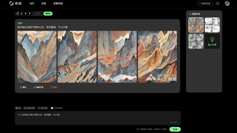 - 灵活的图片比例:奇域AI支持不同比例的图片生成,如3:4、16:9、1:1、3:2等,为用户提供了更多的灵活性和创作自由度。