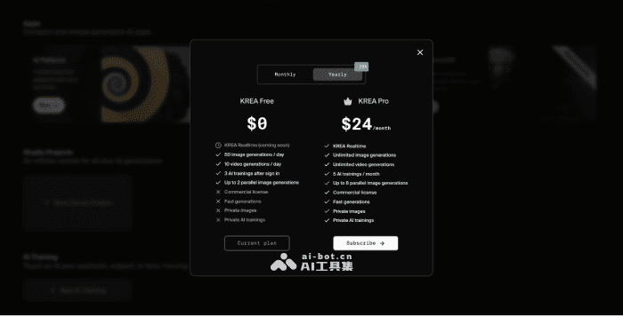 - 免费版:可免费生成50张图片每日、10个视频每日、登录后3次AI训练、无商用许可