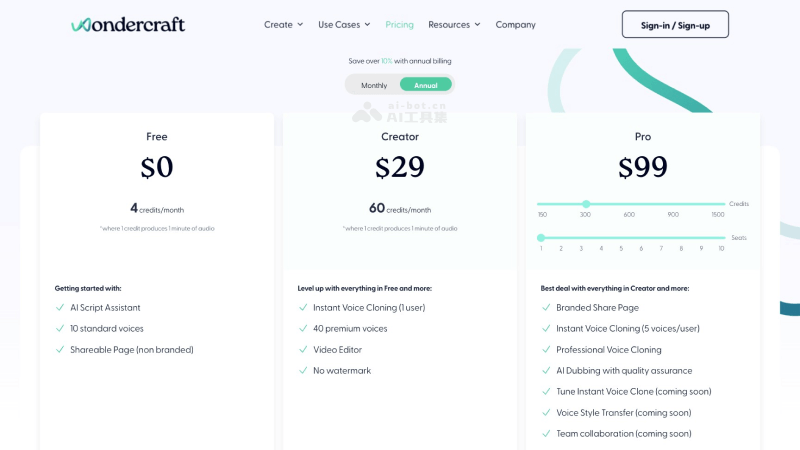 更多详细信息请查看Wondercraft的Pricing页面